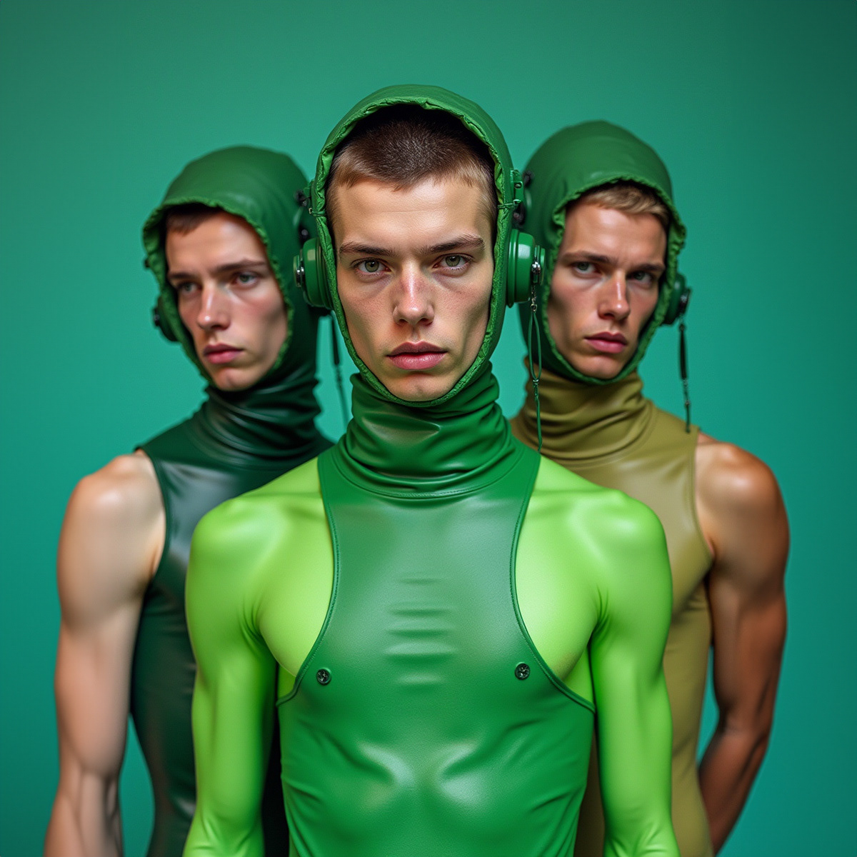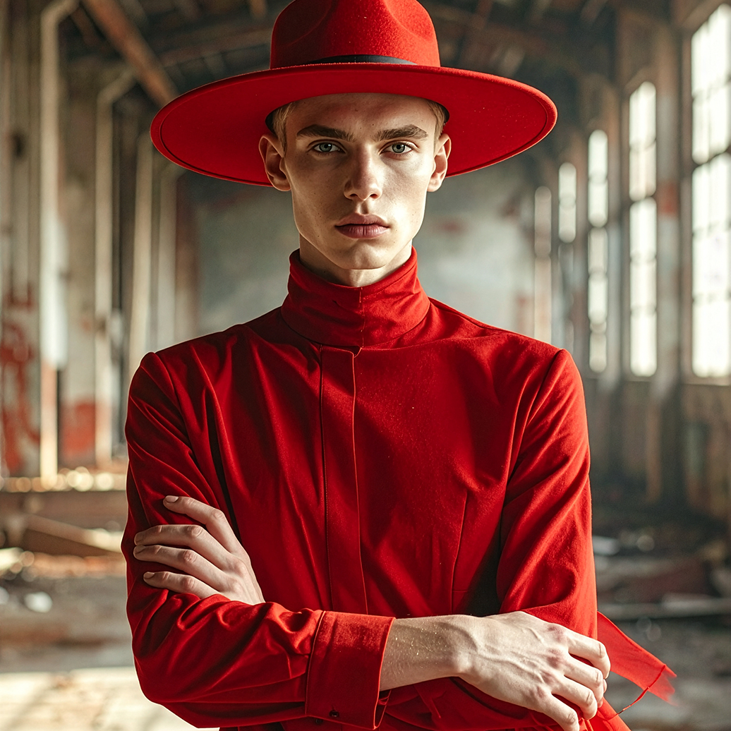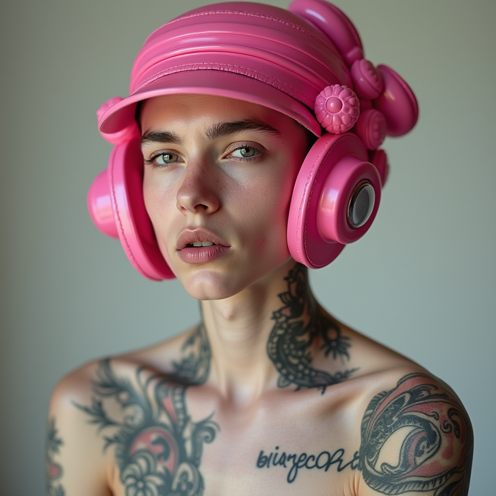 My first project was called 'Headgear'. Inspired by the fantastic hats of Philip Treacy - an exceptional fashion designer and artist whom I admire and who is one of my idols. Admittedly, with Scribble Diffusion I had more opportunity to create my own style as it was based on a drawing of mine. This series was created using Visual Electric and is based purely on text and fashion photography of the model.