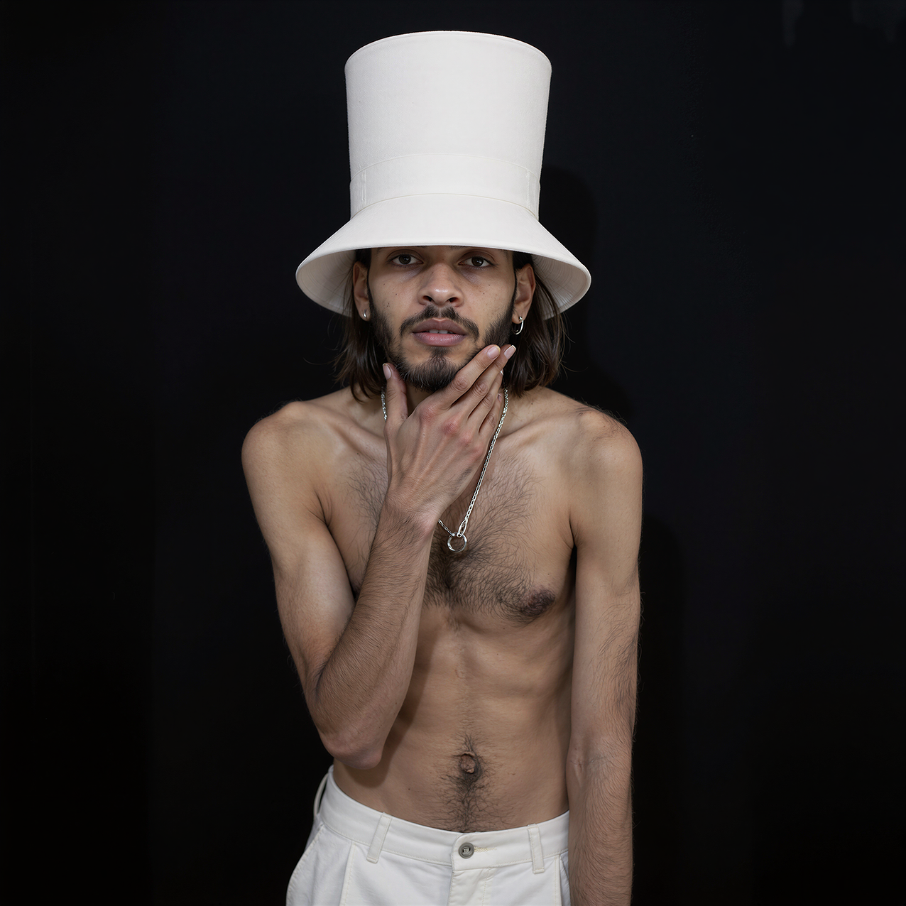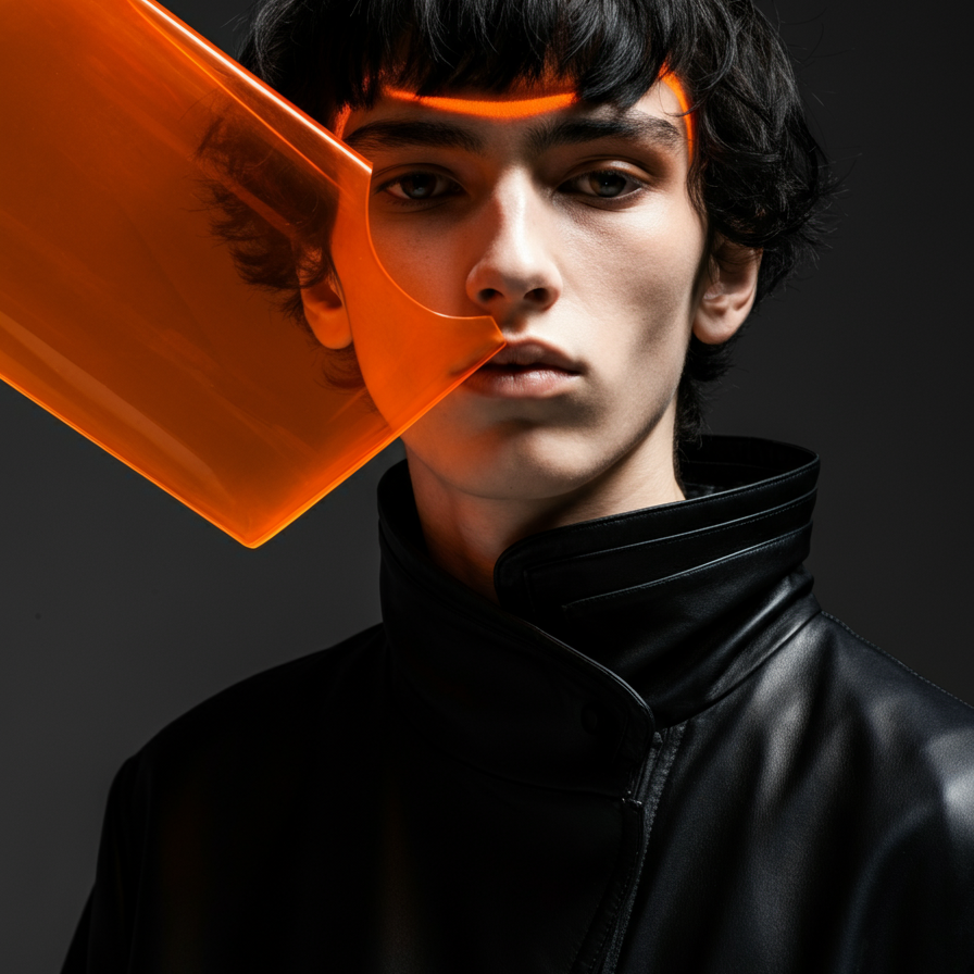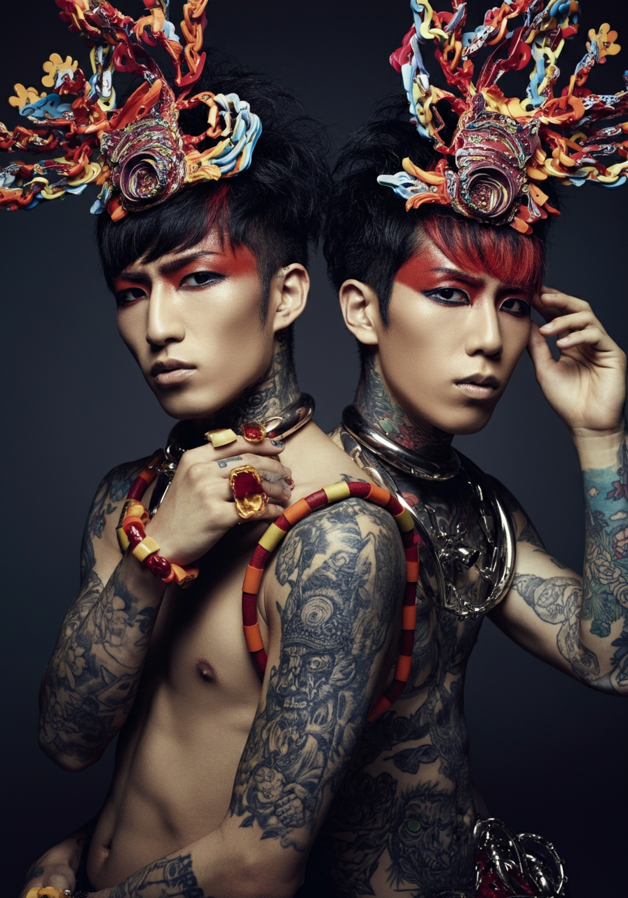 My first project was called 'Headgear'. Inspired by the fantastic hats of Philip Treacy - an exceptional fashion designer and artist whom I admire and who is one of my idols. Admittedly, with Scribble Diffusion I had more opportunity to create my own style as it was based on a drawing of mine. This series was created using Visual Electric and is based purely on text and fashion photography of the model.